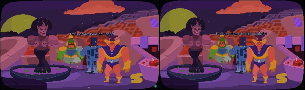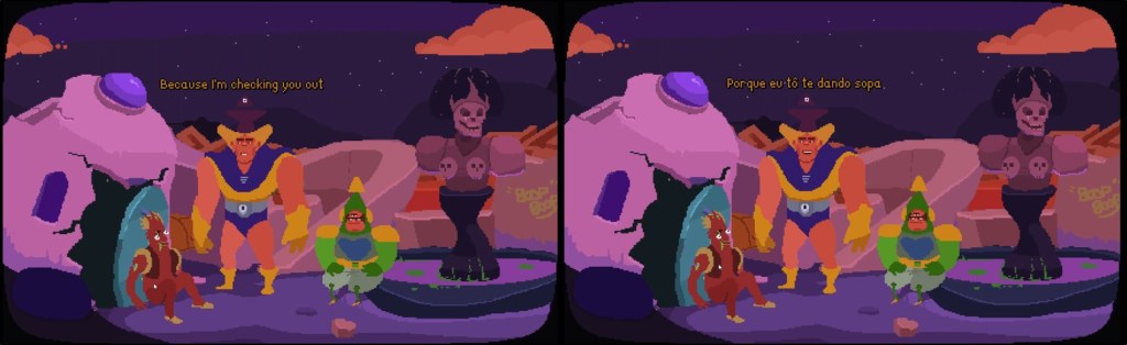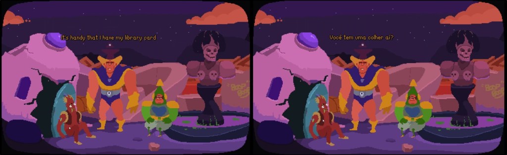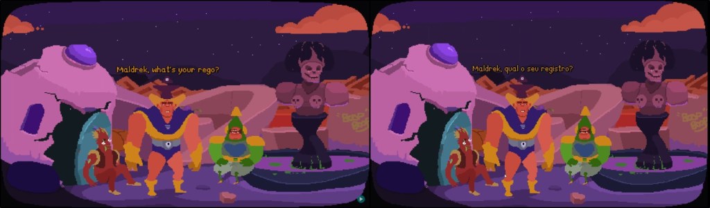 This game was chosen for LocJam 5, a video game translation contest, in 2022. I have not participated in the contest, but, in 2024, I translated the game and implemented my translation. The original version, in English, is available here. My translated version, in Brazilian Portuguese, is available here.