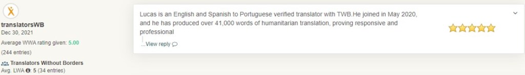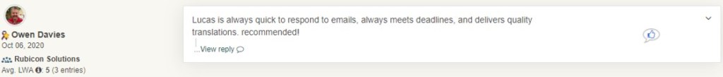Some clients wrote comments on my feedback page on ProZ. Other clients didn’t write a comment, but stated their willingness to work again with me. If you want to see my full feedback page on my ProZ profile, click here.